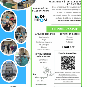 SÉJOUR RESSOURCES 9 eme édition . Programme de la réunion: 1/ Présentation du séjour RESSOURCES :-se déroulera du 15 au 20 mars 2026-réunissant env 12 patients et aidants-proche de Lyon dans une gîte magnifique avec piscine intérieure .-1 lieu de ressources unique ses activités ,les transferts,horaires arrivées et départs . 2/ Inscriptions participants,vous pouvez venir...