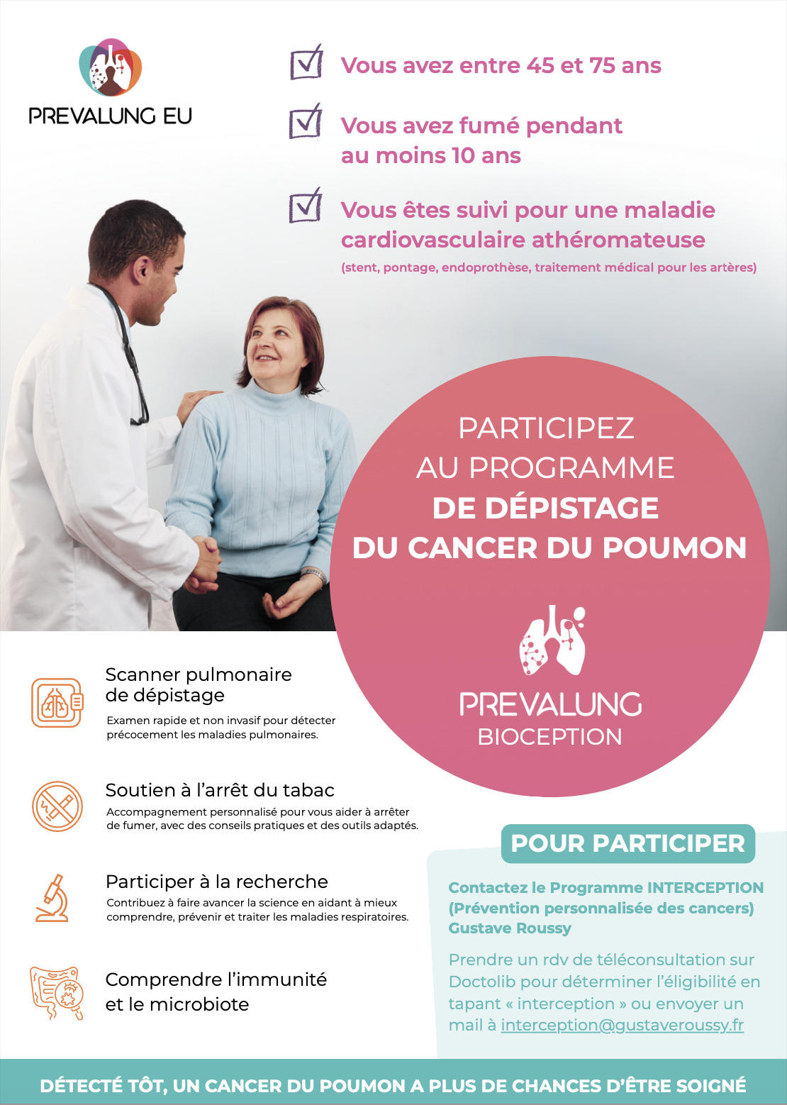 Le programme PREVALUNG EU, coordonné par Gustave Roussy et soutenu par la Commission européenne, vise à développer des biomarqueurs sanguins pour affiner l’évaluation du risque individuel de cancer du poumon. Ces outils permettront de personnaliser les parcours de dépistage, notamment pour les patients cardiovasculaires fumeurs ou anciens fumeurs.
